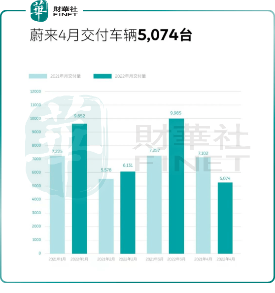 官方称,4月共交付新车9087辆,已连续13个月同比增长超过200%。2022年1-4月累计交付量为30666辆,同比增长达419%。