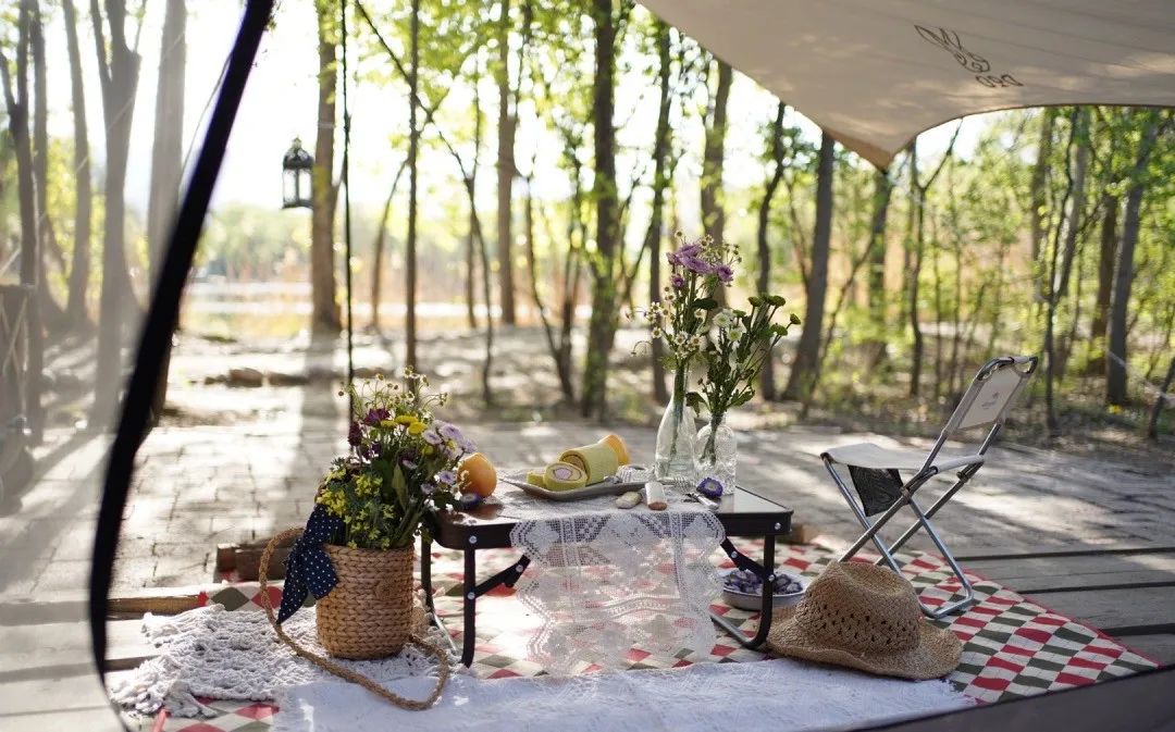 那天在营地里转了一圈,对豪华搬家式露营印象最是深刻,但他对那种“精致味”不感冒,“和我追求的放松感不是一回事”。在体验过北京十个营地后,老吴终于找到了比较满意的,有湖有林,更多了几分静谧。