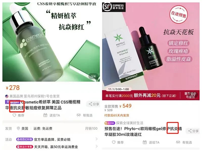 在这种情况下,此前国内电商平台上仍然存在着被国家药监局明确指出不得作为化妆品原料使用的“EGF”“CBD”等产品,其中包括城野医生、CSS等比较知名的国际品牌;还有不少跨境美妆产品打着“抗炎”“消炎”等国内禁止使用的宣称。为此,不少业内人士曾对媒体表示无法理解。