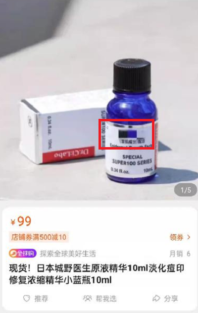 聚美丽记者观察到,欧玛油橄榄精华、Cosmetic希妍萃橄榄积雪草精华等产品都纷纷去掉了此前使用的“抗炎”这一宣称,改用“舒缓”“退红”等宣称;城野医生也下架了EGF相关产品,目前仅一些C店及代购店铺还在少量售卖相关产品。值得注意的是,这些店铺对产品瓶身上的“EGF”标识做了打码处理。