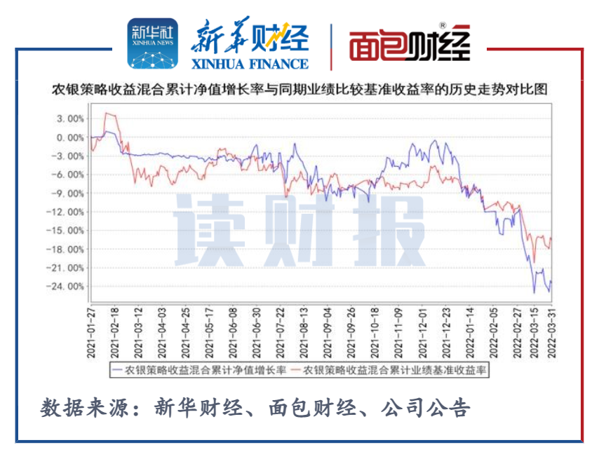 2022年一季度,农银汇理策略收益混合的总亏损近16亿元,资产净值较去年年末减少约21亿元。