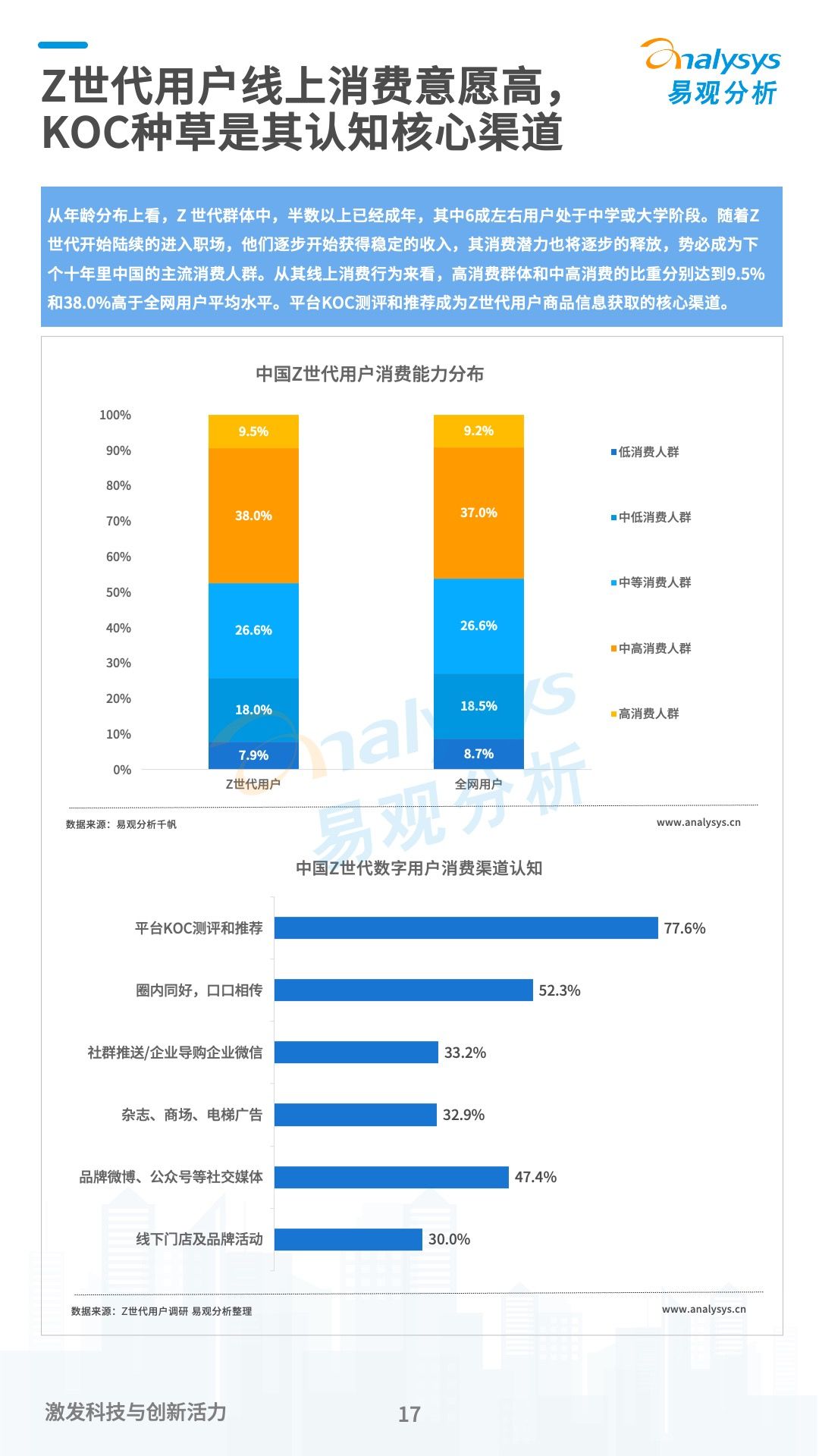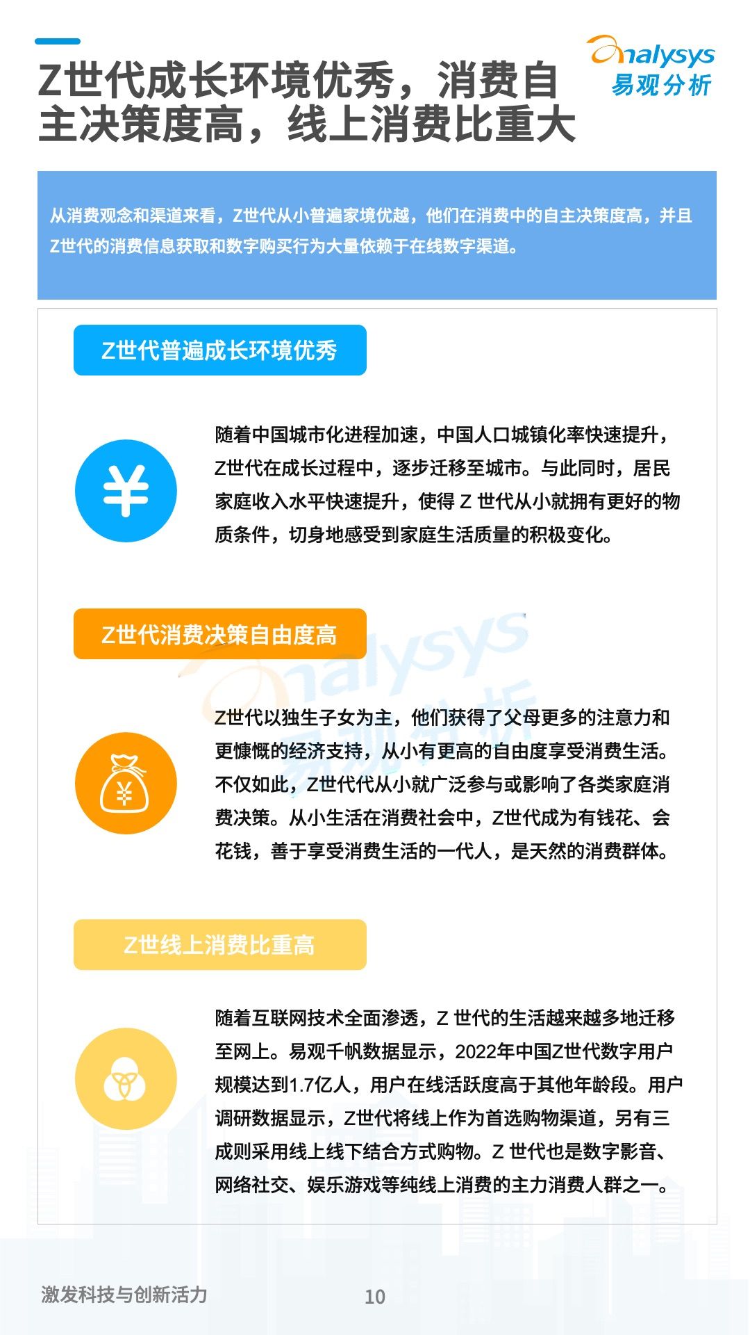 《数字经济全景白皮书》Z世代用户洞察篇完整版报告发布!“Z世代”(核心群体1998年至2009年出生的人群)生活方式深受网络科技和信息媒介变革的影响,其消费观念发生了较大变迁。国家统计局资料显示,我国Z世代的人口数量达2.6亿,随着这部分用户的成长,未来其商业价值也将不断显现。