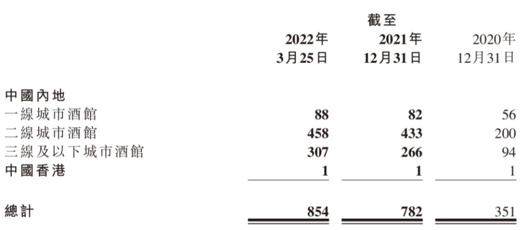 回顾2021全年,海伦司新开452家直营酒馆,截至2021年末,酒馆网络已增至782家;截至2022年3月25日,酒馆网络进一步增长至854家,覆盖26个省级行政区及152个城市。过去一年不仅实现了门店数量翻倍,新增门店更是超过了过去三年新开门店的数量总和。