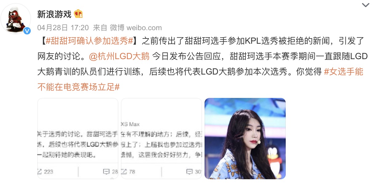 根据新浪游戏的消息,日前王者荣耀职业联赛(KPL)传出了女性选手甜甜珂参加选秀被拒绝的新闻。虽然后续又有甜甜珂确认参赛的消息,这一事件仍引发了诸多讨论,因为KPL赛场基本上清一色是男生,不少网友开始关注女选手能否在电竞赛场立足的问题。其实,女性玩家在电子游戏中面临的诸多困境,也并非是因电竞职业选手稀缺。事实上,很多女性在打开游戏的瞬间,就已经感受到了女性在电子游戏中的处境——游戏中女性形象如此关注女性的身体价值和性客体身份,而忽略其他价值;女性玩家被看作是“菜”的,需要男性玩家“带妹”;在职业比赛领域,女性的处境更是艰难。