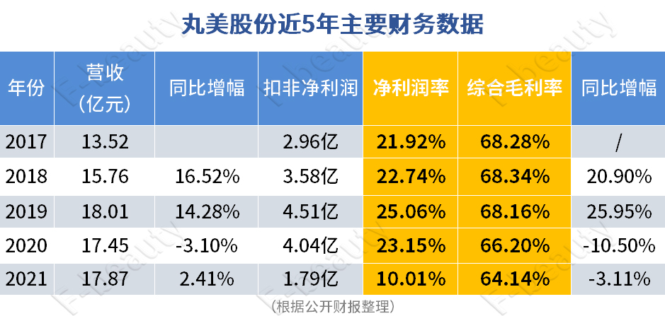 与此同时,丸美股份的综合毛利率并没有大幅度下降,这说明品牌的溢价能力和公司的整体盈利能力并没有本质上的变动。
