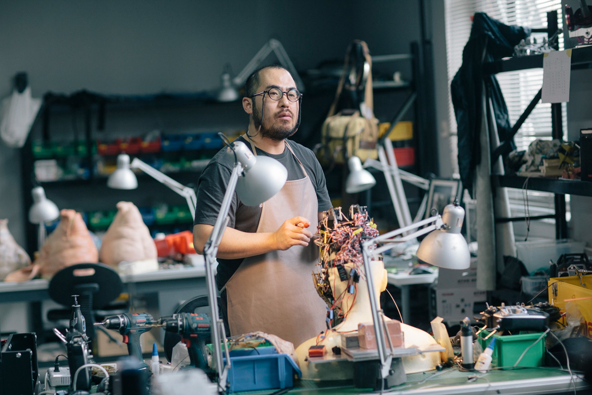 如今,这伙儿电影美术设计出身的年轻人,已经搞明白了机械,电路,青蛙皮肤的质地,猩猩嘴角的表情。6月初我们采访时,他们正在做一只能以假乱真的猪头道具。到7月上旬,猪头已宣告完工。