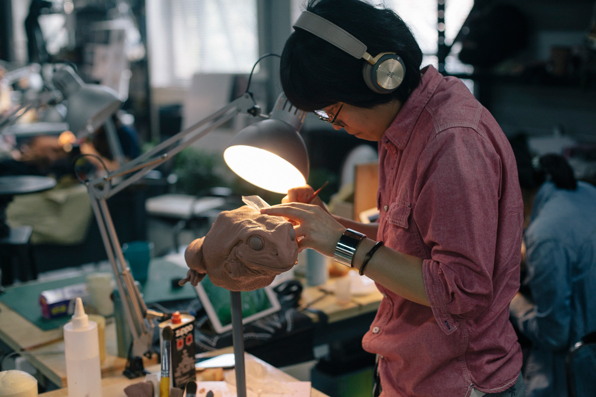 王晓晨做概念设计,也做雕塑。模型雕塑的难点在于尽量逼真地表现出皮肤的质感、纹理。