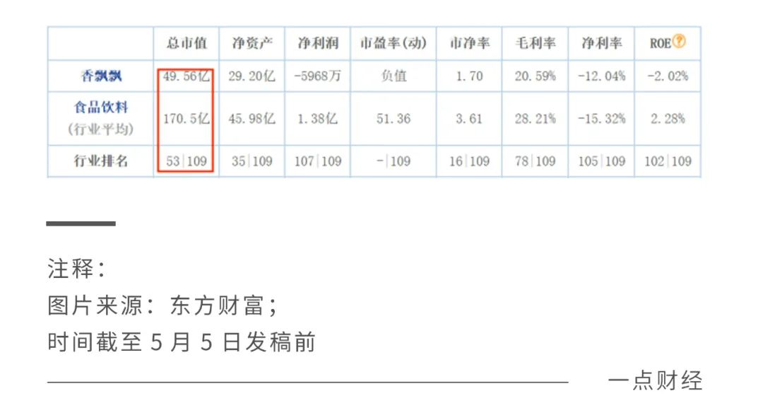 “规模不小,市值很小。”在某投资者问答平台上,投资者们一针见血地戳破了香飘飘的遮羞布,49亿元的市值远低于行业平均水平,而其开年来的业绩表现,亦难为其添彩。