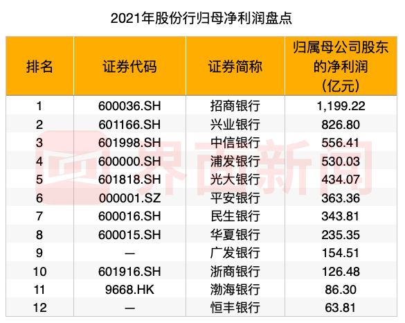 从盈利能力来看,截至2021年末,华夏银行ROE(净资产收益率)9.04%,较上年末提高 0.40 个百分点。与同业相比,据界面新闻记者统计,2021年华夏银行的归母净利润在12家股份行中位列第8名,前3名依次为招商银行、兴业银行、中信银行。