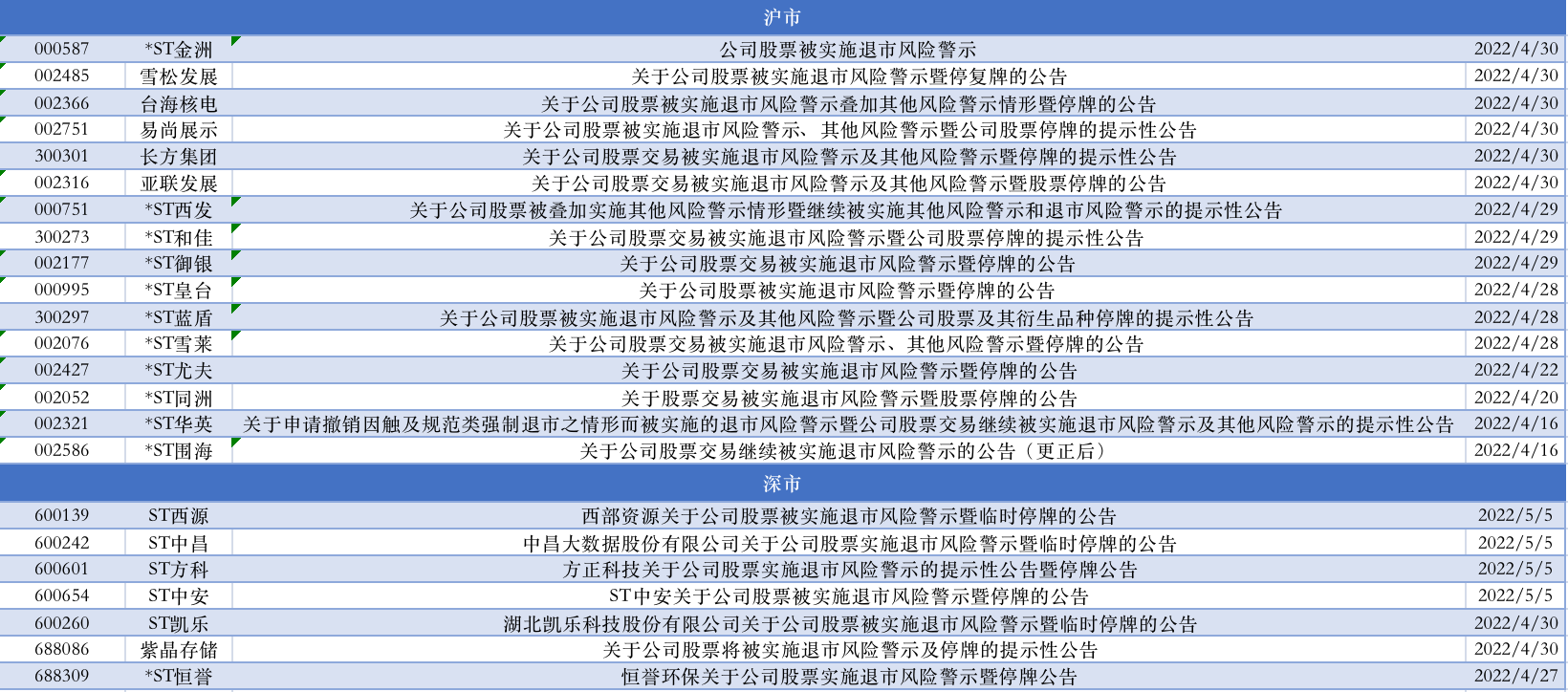 五一假期过后,又有一批上市公司拉响退市风险警报。