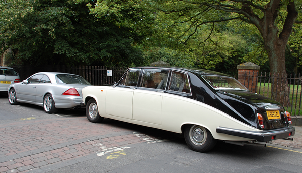 戴姆勒DS420是最后一款独立的戴姆勒车型,之后的都是“顶级的捷豹”,也是那个年代欧洲仅有的两个可以和劳斯莱斯竞争的车型(另一款是奔驰600,下文会提到)。车身设计采用了古典大轿车的元素,5.74米长,1.995米宽,车高达到了1.62米,让贵宾有庄重的坐姿的同时还保持了宽敞的头部空间。3.58米的轴距能容得下可折叠的第三排座椅,有的是后两排对坐,有的是三排座椅都朝前。这款车多次在007电影里出现。