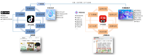社交内容平台侧重于场,抖音、快手等平台分别在自家平台内搭建并完成内容电商场的服务能力,拉传统品牌,造新品牌,分别先后推出以抖品牌、快品牌为主要概念的品牌营销方法论。