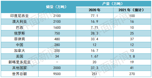 由于资源禀赋和投资环境的差异,澳大利亚、巴西的产量,与印尼相比仍具有较大差距。