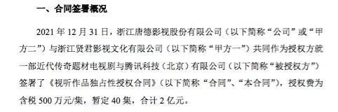 以唐德影视为例,去年底与腾讯视频签订了费用合计2亿元的独播协议,其中涉及项目被认为是靳东主演的《无间》。一季度唐德影视仍处于亏损,还有待该项目的定档上线。