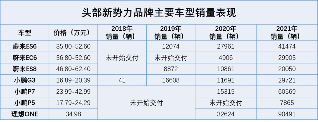 而小鹏、理想,也随着旗下小鹏P7,理想ONE等车型的推出,在高端市场中逐渐站稳脚跟。