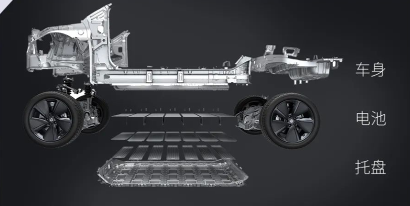而零跑最近推出的CTC电池底盘一体化技术(比亚迪、特斯拉也在做),可以看做是整车标准化的尝试。它将电池和底盘进行了集成设计,让下车体底盘结构和电池托盘结构耦合,减少了大量冗余结构,一定程度提升了空间利用率。