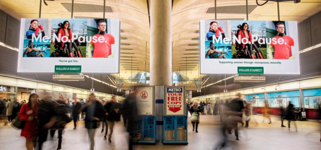 在英国,伦敦交通局曾发起一项关于“我们看得到的女性”的竞赛,旨在呼吁品牌们更好地反映女性的多样性。欧洲最大的保健品零售商Holland &Barrett凭借“Me.No.Pause”更年期活动主题的广告赢得此次竞赛。