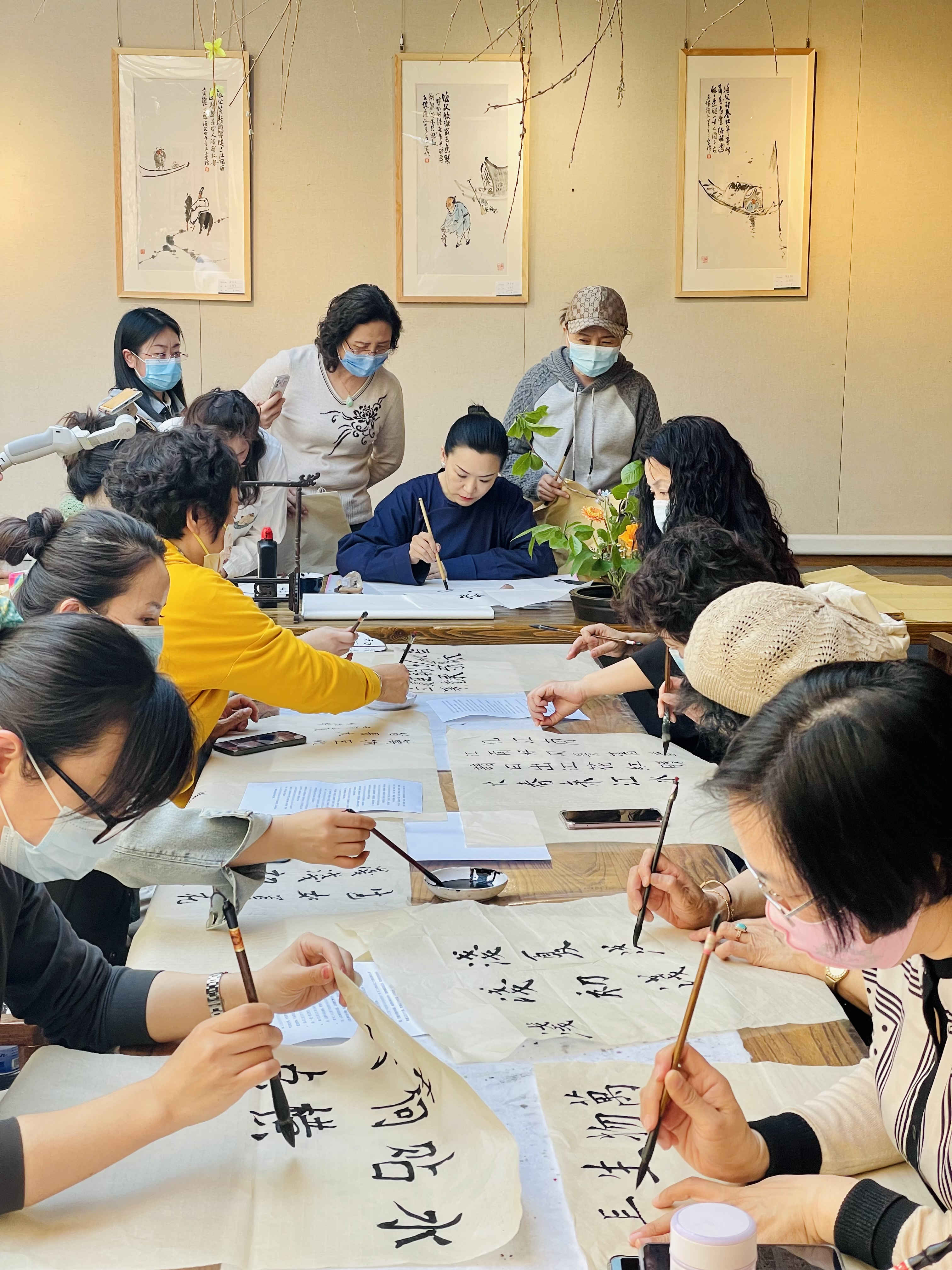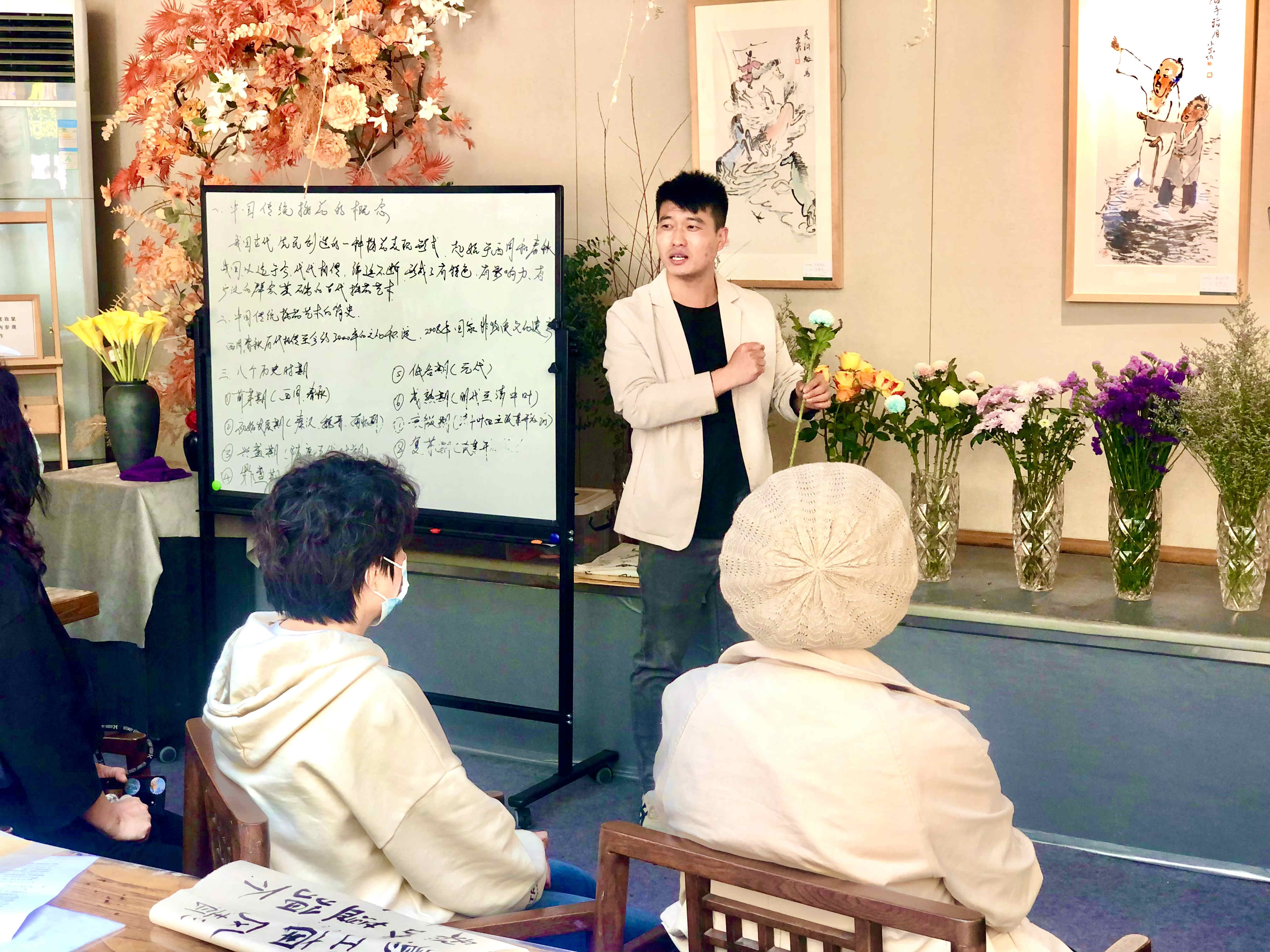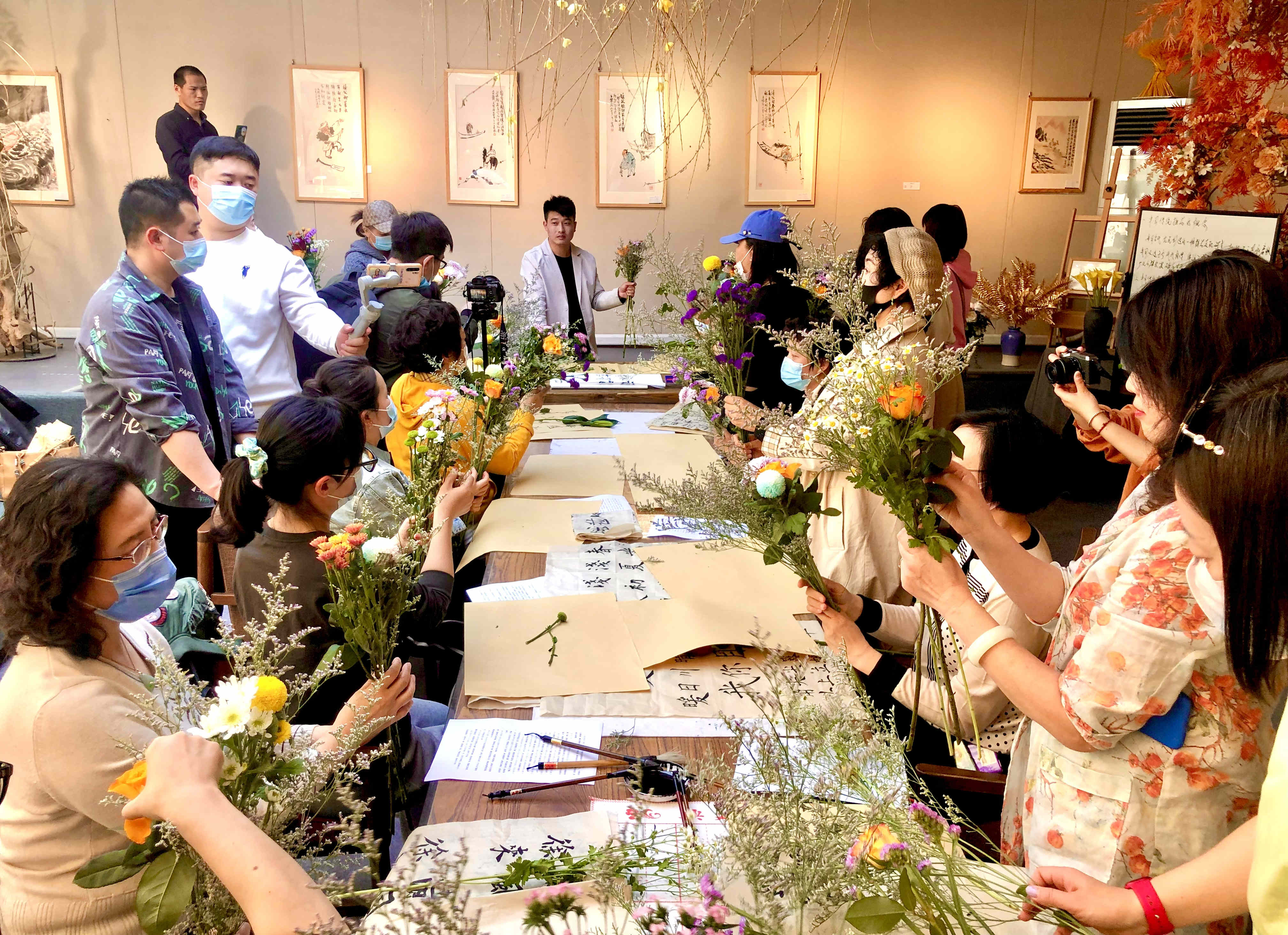 在立夏时节,本次活动邀请了青岛市古琴协会九嶷派古琴传承人张林、小红楼美术馆的花艺师葛双雷、如上书院老师孙双三位节气导师来到现场,分享文化知识,带领大家听琴、品茶、拓印、体味书法与花艺的碰撞,感受立夏古诗词的魅力!现场参与者大多也是“顺时令·承非遗”市南区24节气传承创新活动的关注者,“参加此类活动让我感觉仿佛时光倒转,我也成为了古代的文人墨客中的一员,得以亲身去感受甚至是去创造中国独有的古典浪漫。”现场的一位参与者说道。