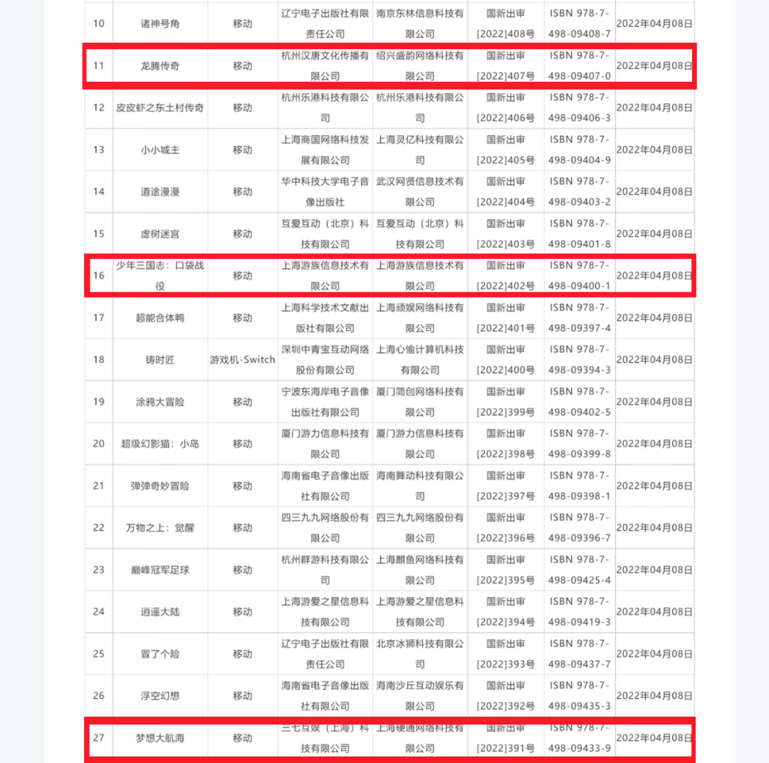 此前,新的一批国产网络游戏审批信息发布,三七互娱(002555.SZ)的《梦想大航海》、游族网络(002174.SZ)的《少年三国志:口袋战役》、恺英网络(002517.SZ)的《龙腾传奇》等45款游戏过审。反垄断大背景下,本轮版号过审集中于中小企业。其中,三七互娱位于行业肩部,恺英网络与游族网络为腰部公司。