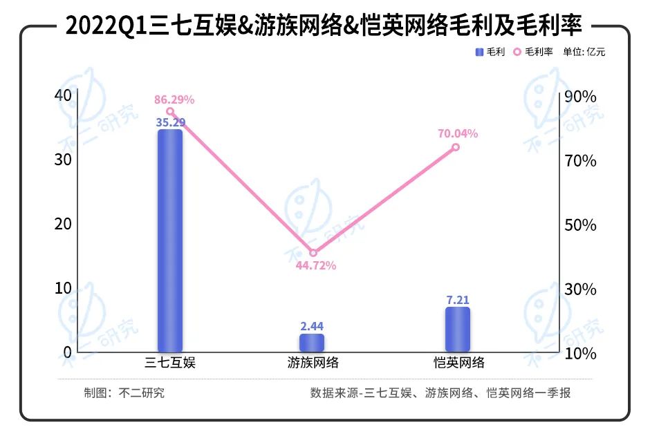 从毛利润来看,一季报数据显示,三七互娱毛利润35.29亿元,同比增长6.97%;恺英网络毛利润7.21亿元,同比增加99.72%;游族网络毛利润2.44亿元,同比减少33.33%。