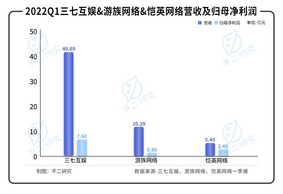 根据2022年一季报,三七互娱与恺英网络已实现营收的正增长:三七互娱营收约40.89亿元,同比增长7.11%;恺英网络实现营业收入10.29亿元,同比增长129.73%。游族网络则仍陷增长瓶颈,营收5.45亿元,同比减少42.31%。