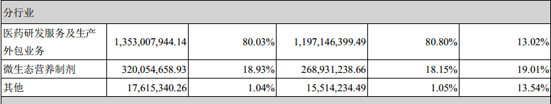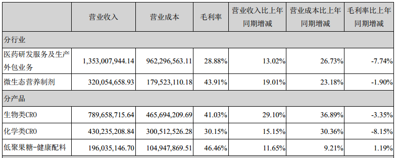 同时,睿智医药微生态健康业务板块2021年毛利率达43.91%,远高于医药研发及生产服务的28.88%。