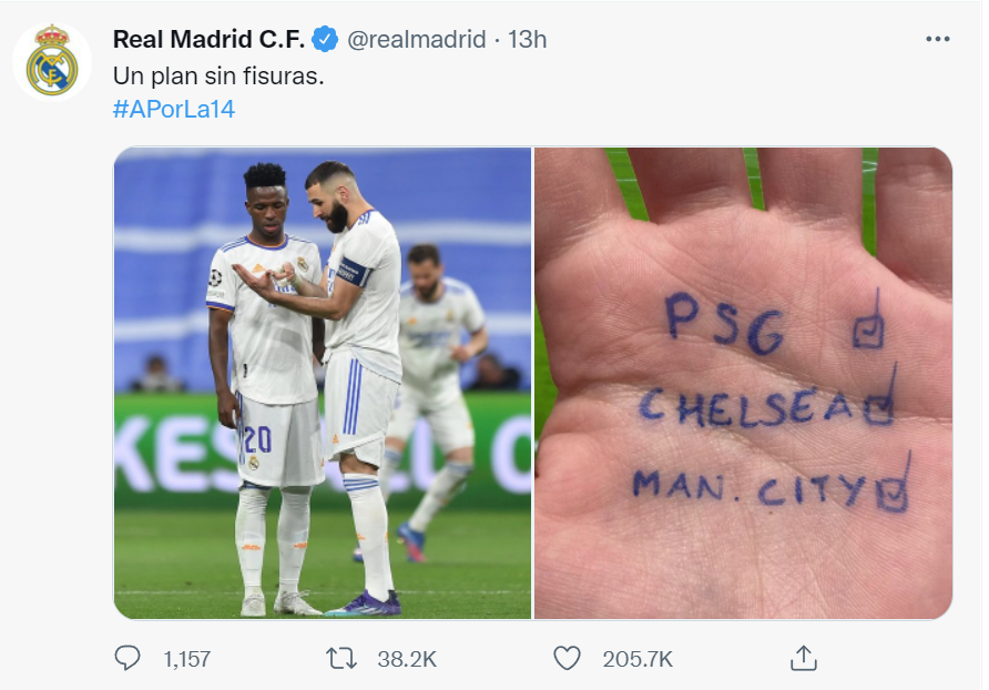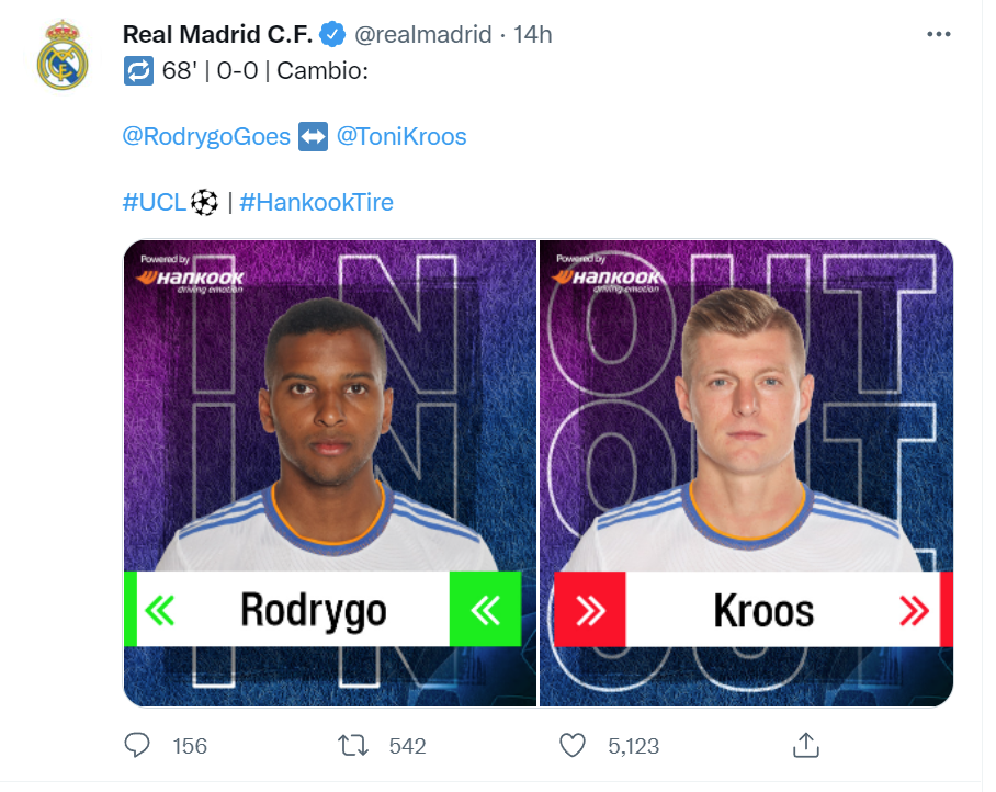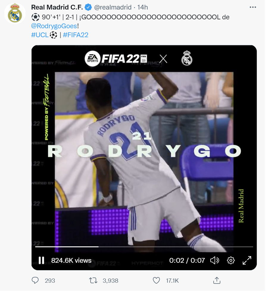 需要注意的是,皇马的官方推特运营,会根据实时比赛情况和走向,决定自己社交媒体发布的实时内容,而不是照搬一个固定的运营套路。