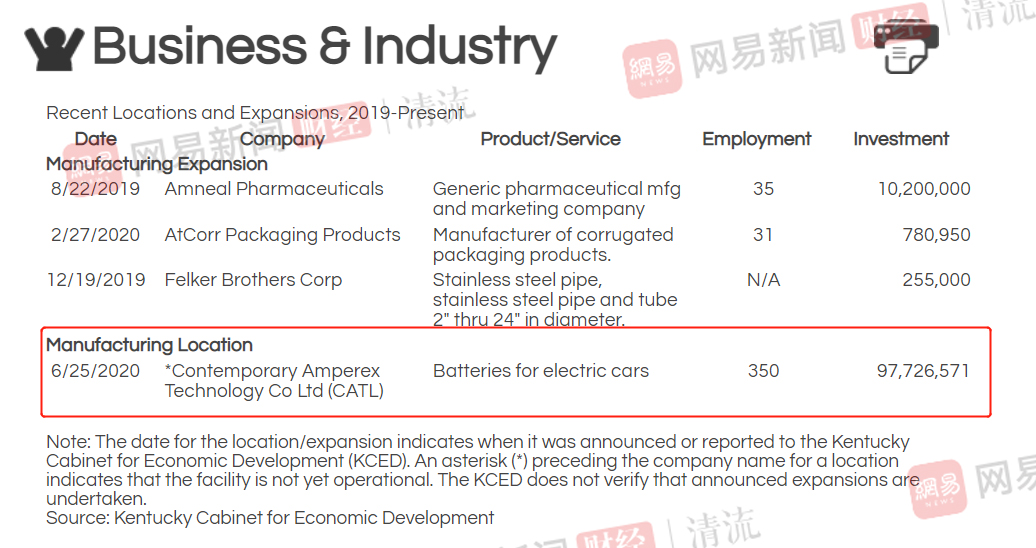 5月6日,清流工作室独家获悉,宁德时代(300750.SZ)已承诺在美国肯塔基州的工厂投入9772.66万美元(约合人民币6.53亿元),用于生产“电动汽车电池”,预计创造350个就业岗位。清流工作室了解到,宁德时代最早是在2020年6月25日作出这一承诺的。不过,美国肯塔基州经济发展内阁消息显示,在作出该承诺时,宁德时代尚未实际投入运营。