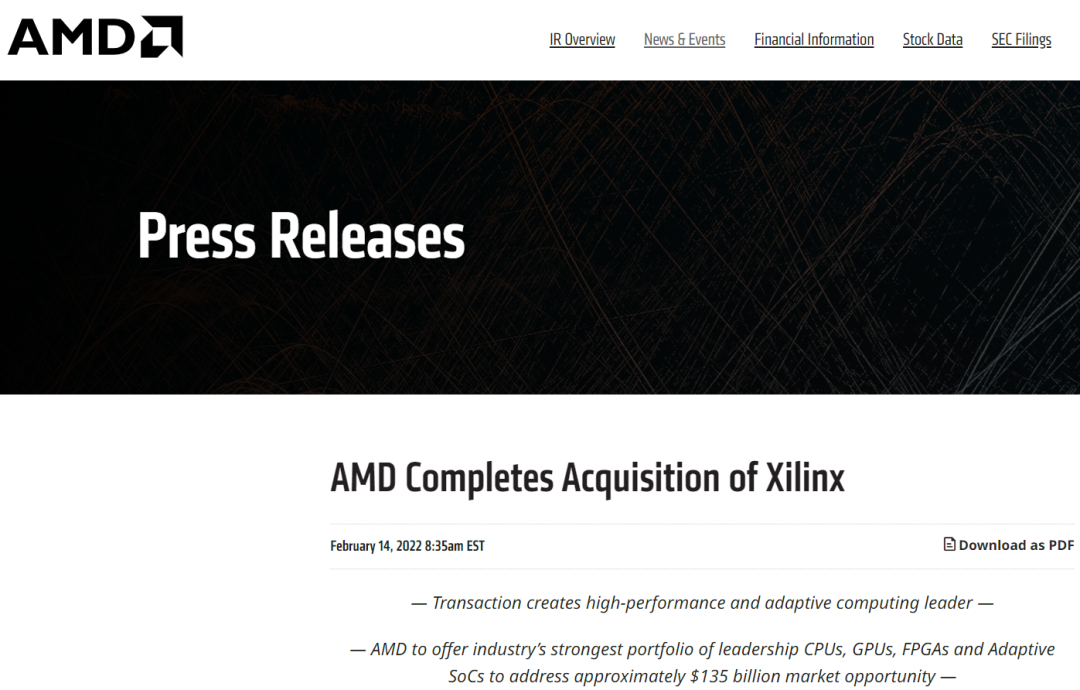 ▲AMD宣布完成收购赛灵思