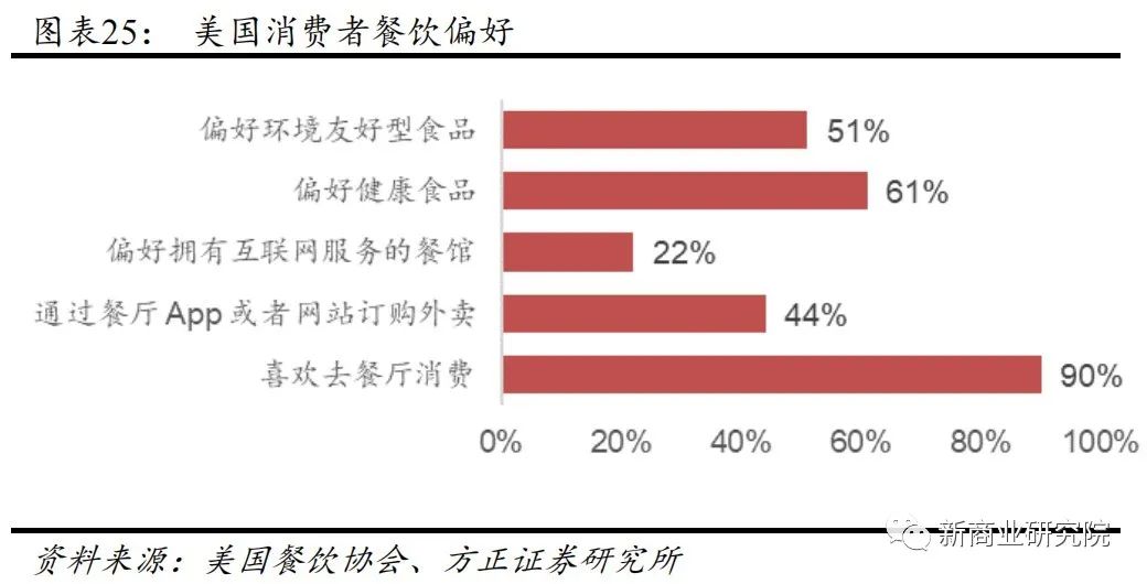 21世纪初至今,受“高肥胖率+千禧代新消费群体+互联网”影响,餐饮产业扩容、结构优化,健康、潮流的新餐饮应运而生。 据美国疾病防控中心2017-2018年调查数据,美国成人肥胖率为42%,过度肥胖率高于9%。随着美国过度肥胖和亚健康群体愈加庞大,居民饮食消费偏好发生改变,更追求饮食健康和品质。 据美国餐饮协会2019年统计数据,61%消费者更偏好健康食品,51%更偏好环境友好型食品。 此外,千禧一代的逐渐成长和互联网进程的加速,也在推动消费习惯从线下向线上消费转换。