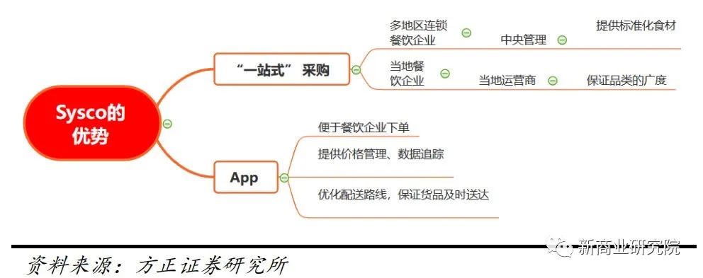 以Sysco为例,对于多地区的连锁餐饮企业,Sysco采用中央管理的方式,提供标准化食材,减少不同地区之间的差异;对于当地的餐饮企业,Sysco通过当地的运营商,尽可能满足顾客需求,保证品类的广度。 相较于其他渠道,顾客通过Sysco的“一站式”采购减少了下游顾客的采购频率,同时下游餐企通过Sysco采购更能保证食品的质量。