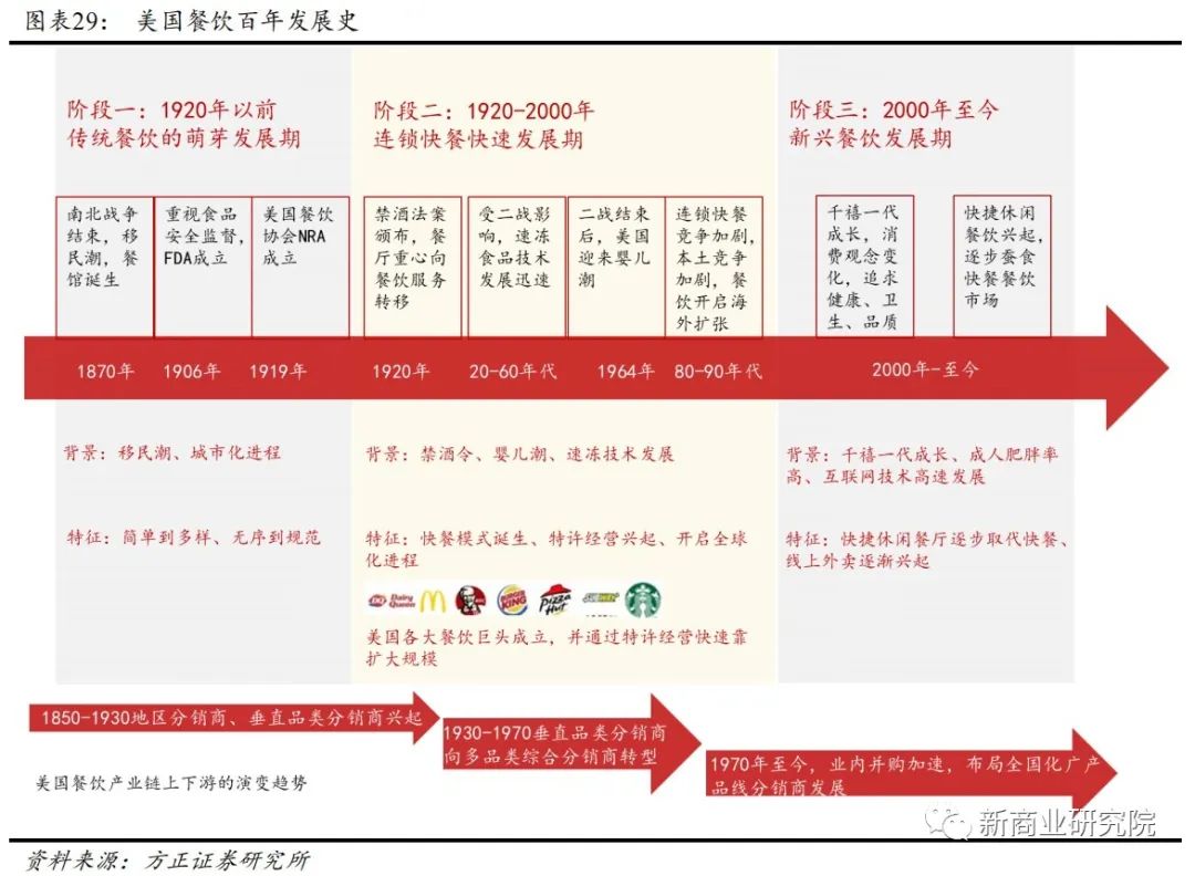 这一期间,美国铁路和公路发展迎来黄金期,到20世纪初,运营铁路公路达到2000多条,为产品运送和外出就餐提供了便利。