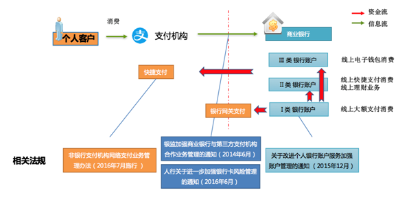 2015年12月,人民银行发布 《中国人民银行关于改进个人银行账户服务加强账户管理的通知》,明确针对个人客户划分1、2、3类账户,分别用于新型互联网支付、互联网金融应用和传统零售银行应用,为商业银行互联网金融创新提供基础;