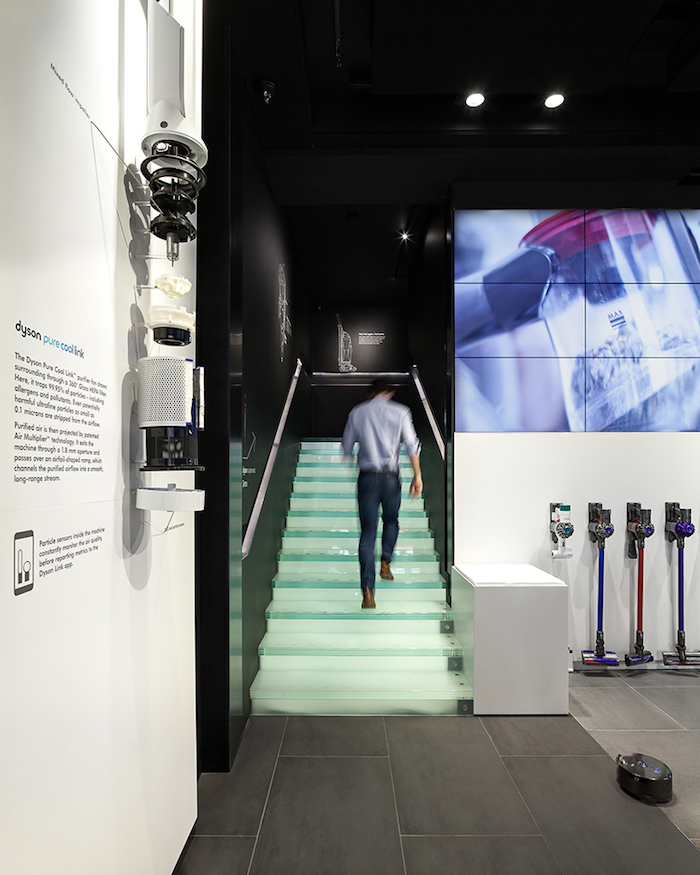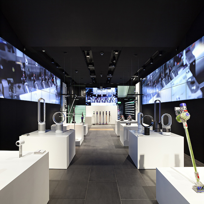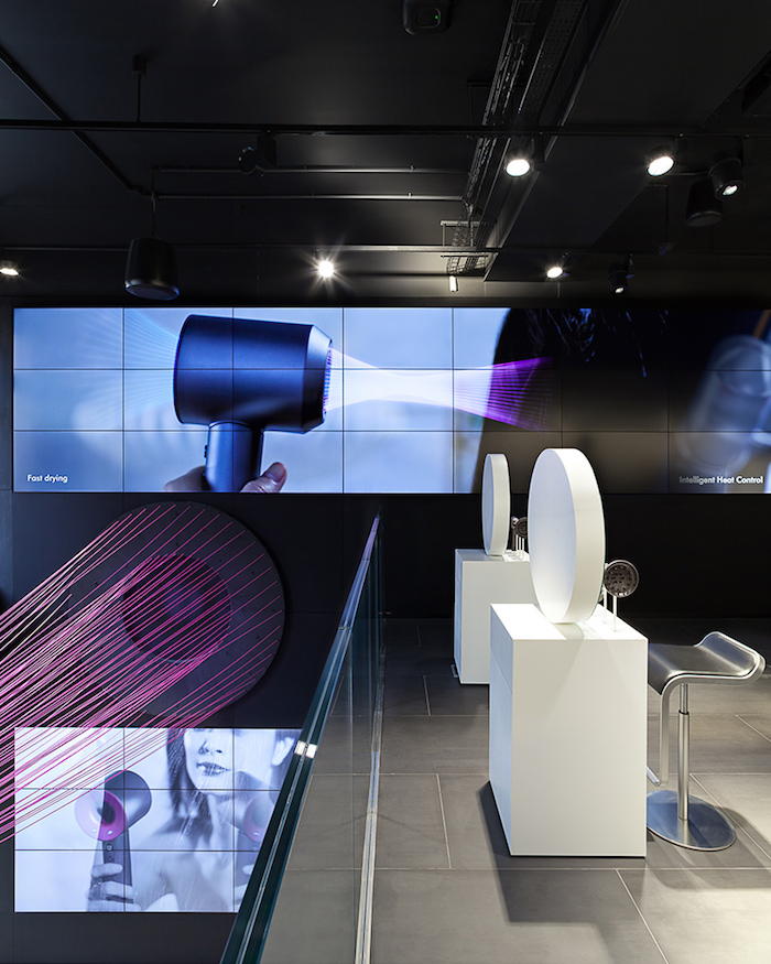 以吸尘器出名的英国品牌戴森最近在英国伦敦购物胜地牛津街上开出了一家两层楼的全新概念门店。与普通家电零售空间的设计比,这个概念店更像是一个具有科技气息的画廊——黑色的天花板、背景墙与白色的展台以及大片的LED屏幕墙搭配,为本身已经科技感十足的产品提供了一个匹配又吸睛的展示平台。