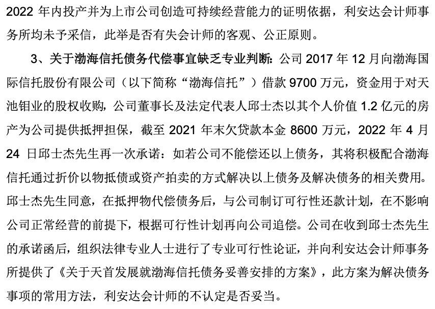 然而,*ST天首并不认可利安达的这份审计意见。
