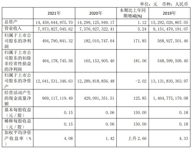 2021年度归属于上市公司股东的净利润为4.95亿元,和上一年度的1.82亿元相比,出现了171.85%的增长,但是也少于2019年度的5.49亿元。