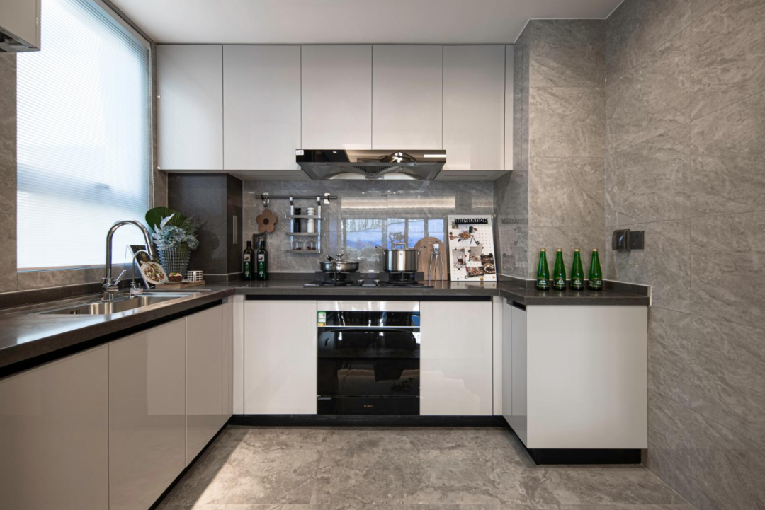 厨房U型设计,油烟机,灶具、洗碗机等电器均采用了一线品牌,并配有净水器。