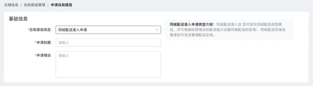亿邦动力按照商家提示进入拼多多商家后台发现,申请同城配的自助提报功能中,没有对商家的资质设置过多门槛。只要商家店铺满足正常产生销量、有类目负责人和对接运营等基础条件,即可申请,并未对有无门店、品类做限制。