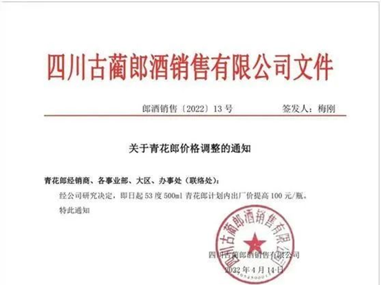受疫情影响、白酒终端消费场景受到限制的情况下,郎酒却宣布涨价,将53度500ml青花郎计划内出厂价上调100元至1009元/瓶,超越了飞天茅台969元/瓶的出厂价,成为行业内首个站上千元出厂价的大单品。但青花郎建议零售价仍为1499元/瓶,比飞天茅台、五粮液价格持平。
