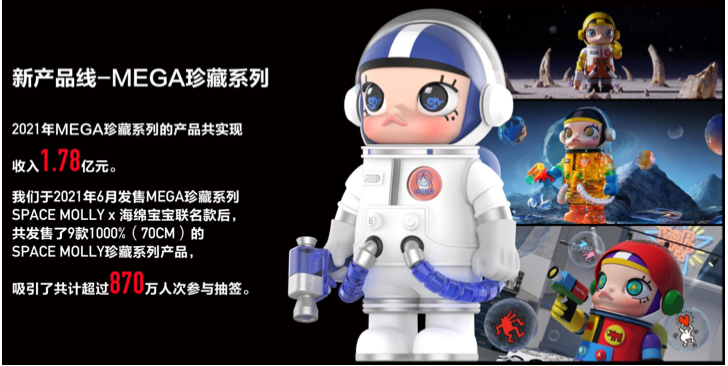 海外营收的翻倍增长,MEGA系列的上线秒光,以及最近和优衣库的联名,这些都是泡泡玛特目前交出的成绩单。