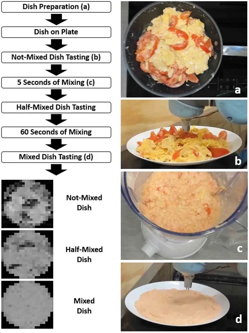 为了证明上述结论,研究人员模拟人类的品尝过程建模,测量“咀嚼”过程中食物在不同阶段的味道并生成数据。咀嚼是粉碎和研磨食物的过程,其主要目的是减小食物颗粒的平均尺寸,同时,较小的颗粒也能为消化酶提供更大的表面积来发挥作用。因此,咀嚼在品尝过程中起着非常重要的作用,研究人员设置混合器来模拟该过程。