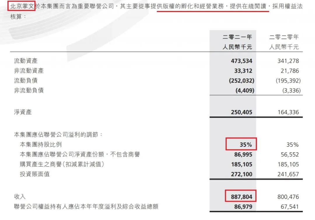 恺兴文化和A8新媒体的营收规模则在亿元上下,其中A8新媒体的收入实际主要来自产业基地的租金及物业服务收入,其2021年来自文化产业(游戏、影视、网文)的营收实际仅为980万元,且较2020年减少了25.3%。不过,A8新媒体持股35%且专门负责网文IP运营的联营公司北京掌文2021收入为8.88亿元,则同比增长了11%。