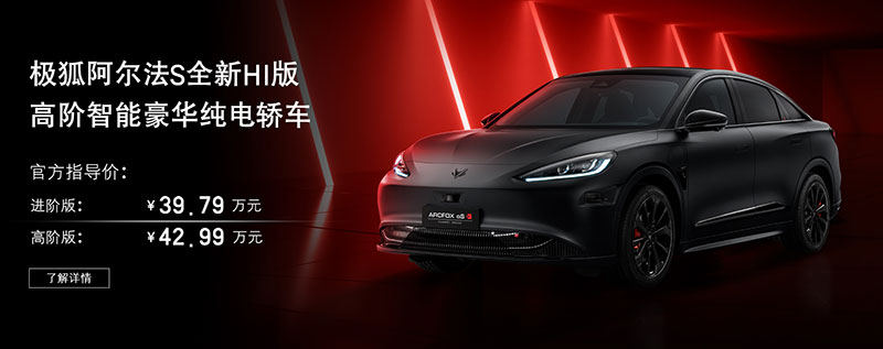 两款极狐阿尔法S全新HI版车型的售价分别为:进阶版39.79万元,高阶版42.99万元。