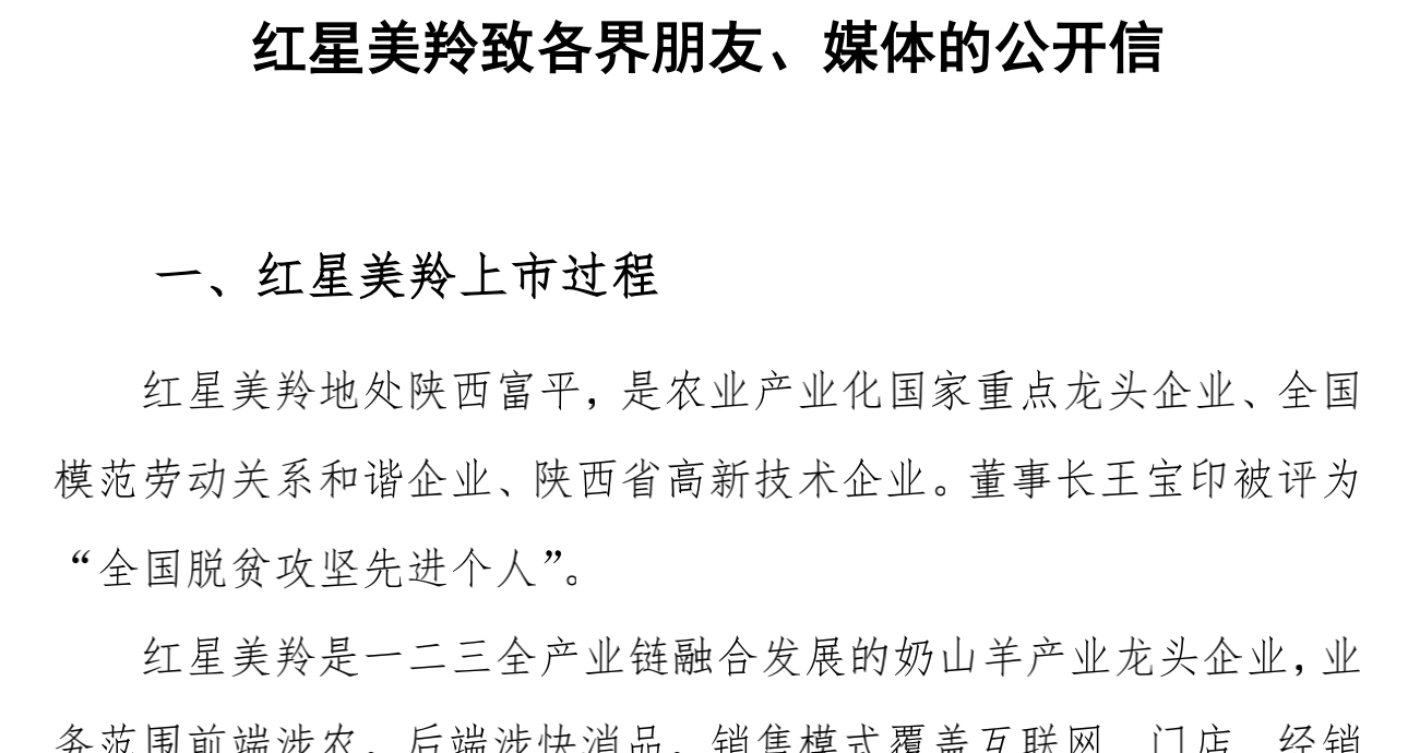 被否之下,红星美羚发声公开信,吐槽酸苦。