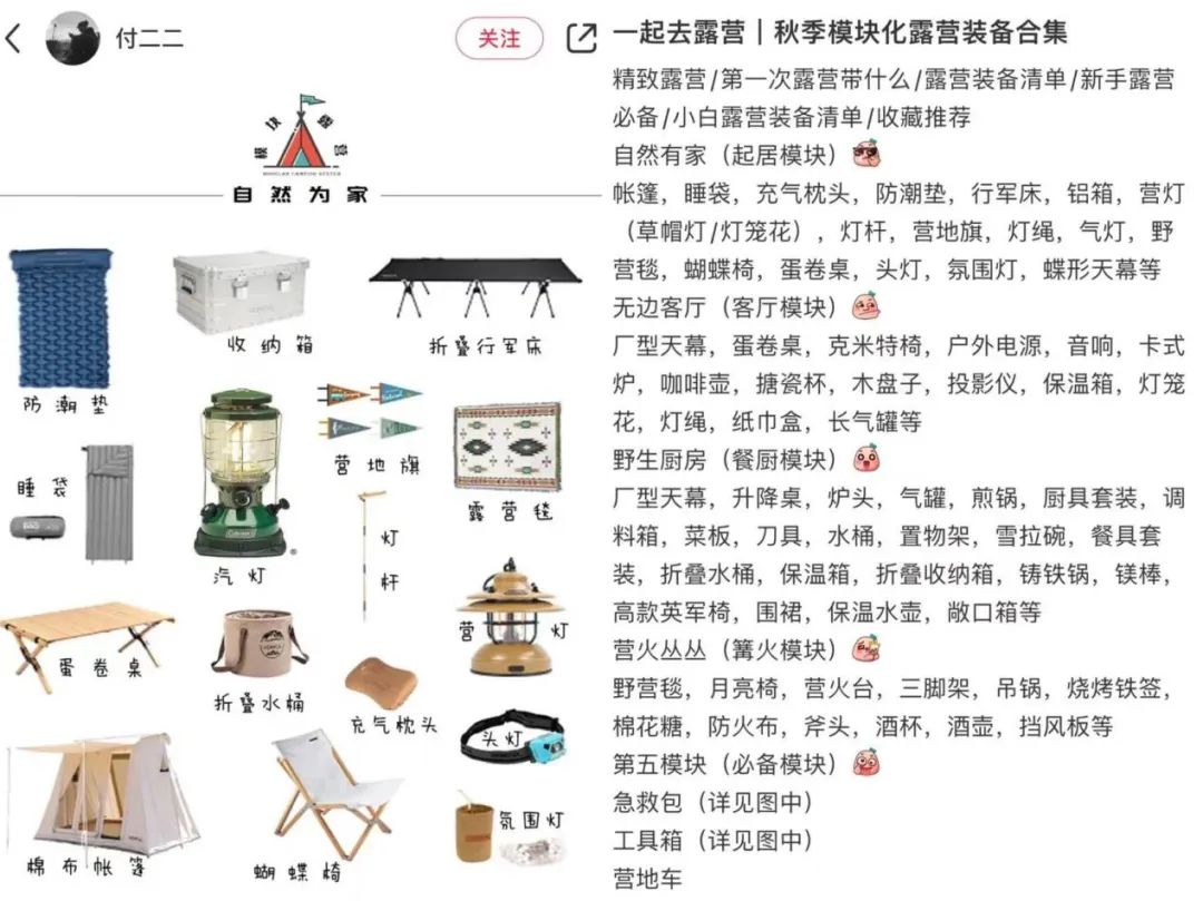 来源:小红书博主分享露营装备