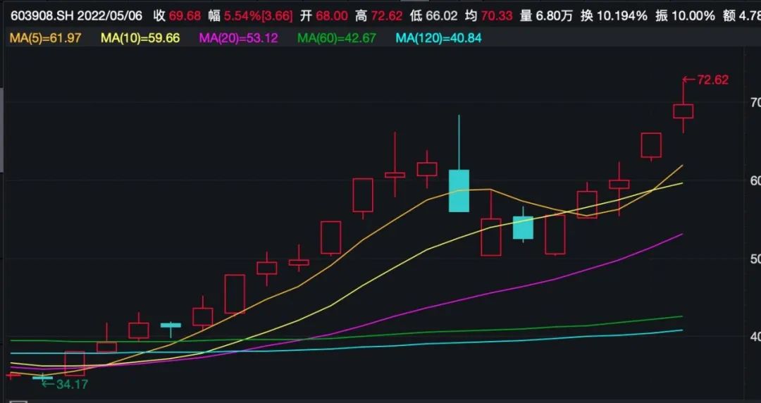 露营需要工具,如必备的帐篷、炊具,还有时下非常流行的月亮椅、蛋卷桌等。露营相关企业由此备受热捧,4月至今,经历了清明、五一两个小长假,以帐篷为主营业务的牧高笛(603908.SH)股价涨超100%。截至5月6日,报收69.68元/股,总市值46.47亿元。