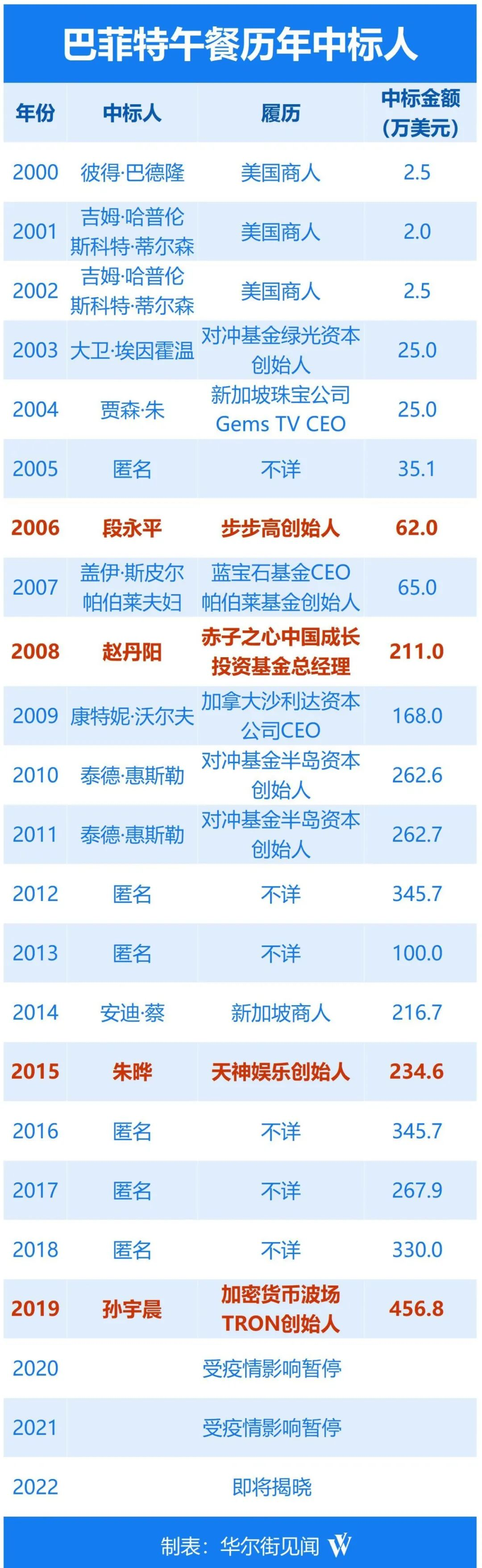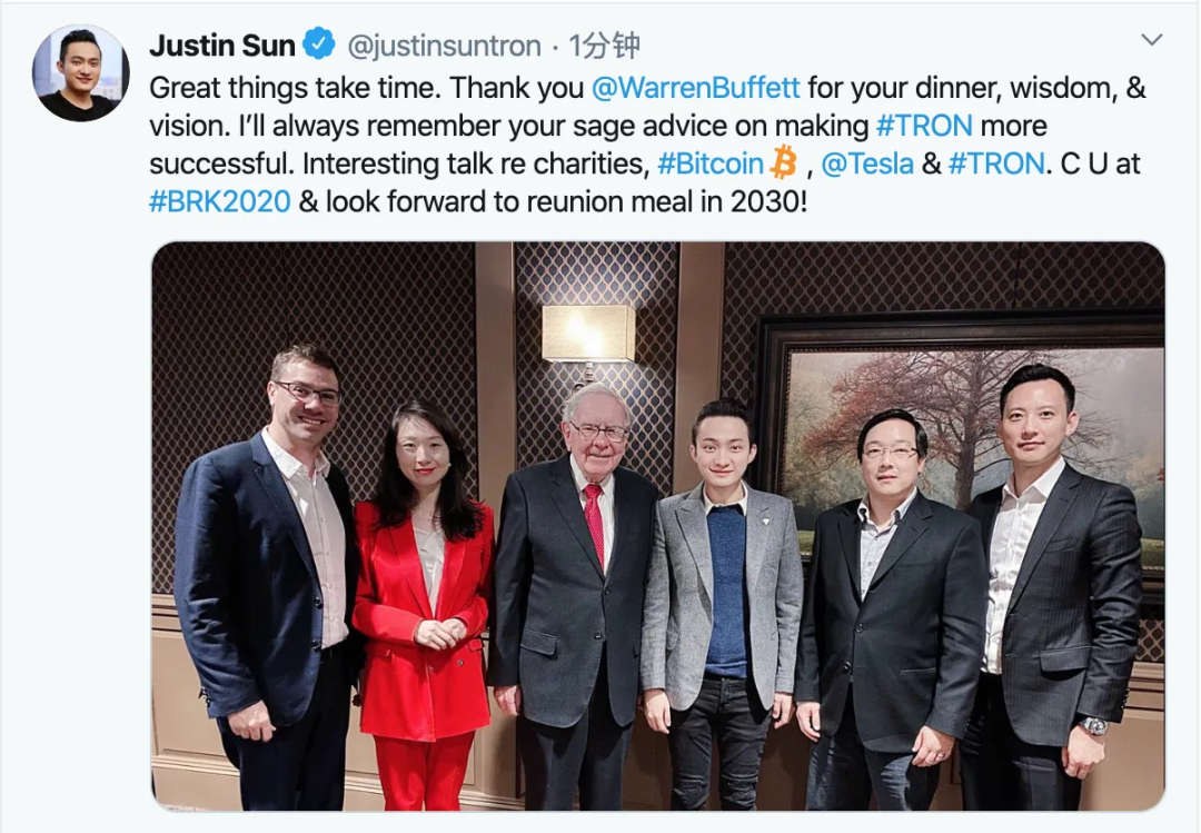 孙宇晨在2020年宣布,以及与巴菲特完成了午餐之约