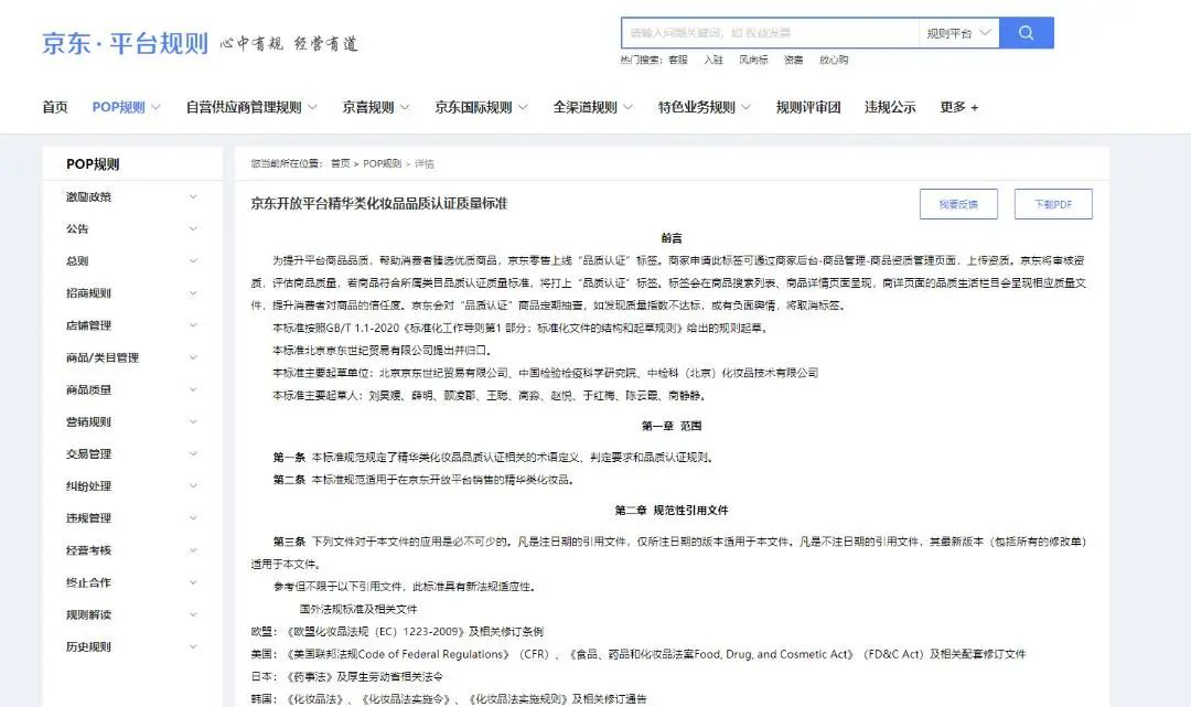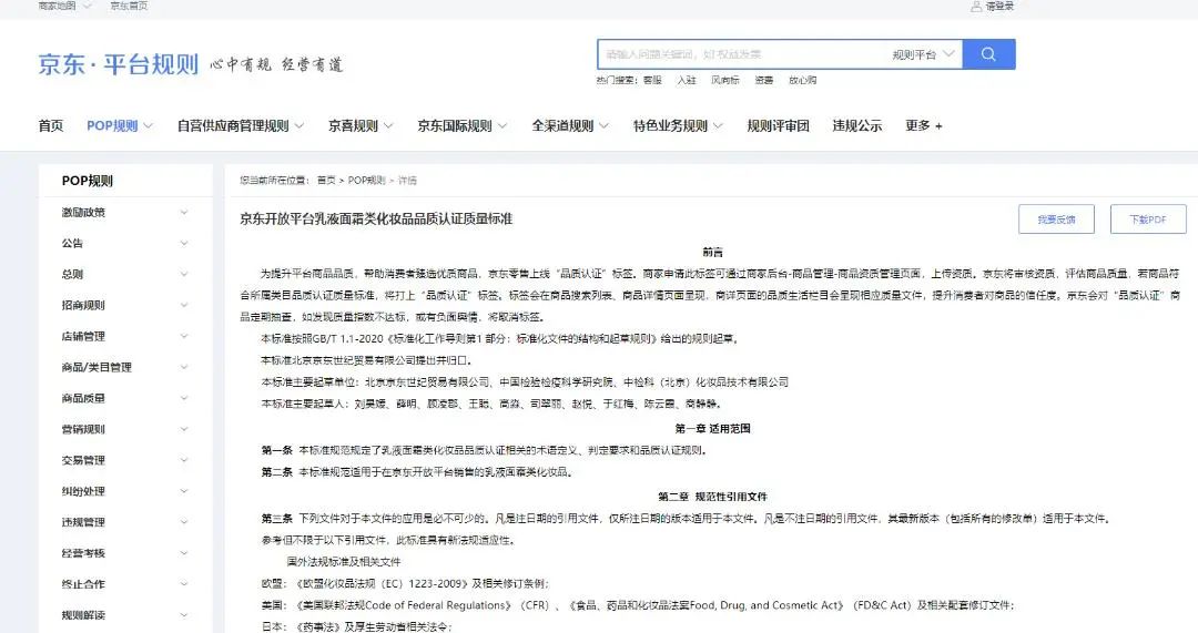 事实上,这并非是京东第一次做出规范化妆品的相关动作,以其近年来的举动为例,2021年12月7日其发布了制定的《京东化妆品商品信息合规规范》,于2022年1月1日生效。