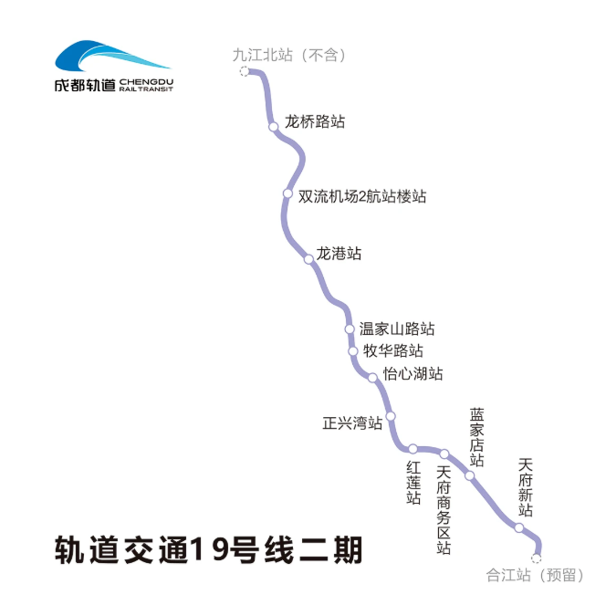 该线路全长约42.87km,共设12站12区间,均为地下线。且将采用A型车编组,运行速度最快将达到160km/h。线路开通后将为成都双流国际机场和天府国际机场“两场一体”的运行模式创造条件,扩大天府新区核心区向双流、温江辐射,对成渝世界级机场群建设和打造国际性综合交通枢纽均具有重大意义。