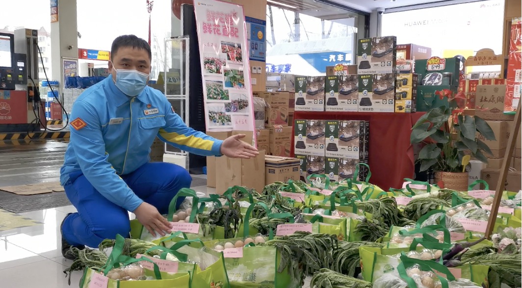 除了忙着加油站里的工作,苏国明每天还要与居家封控的员工交流。3月17日,一位租住在封控小区的员工抱怨买不到菜。苏国明陆续接到咨询生活用品采购的电话、信息,他发现“抢菜”成了大家关注的焦点。